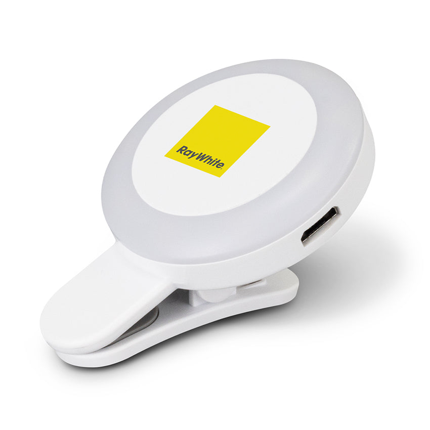 Take flawless selfies with this handy selfie light, featuring an ultra-white LED light with three brightness levels. Easily attach the light to mobile phones, tablets and laptops with the universal clip. The light is easily recharged via the Micro-B charging cable, which is included.