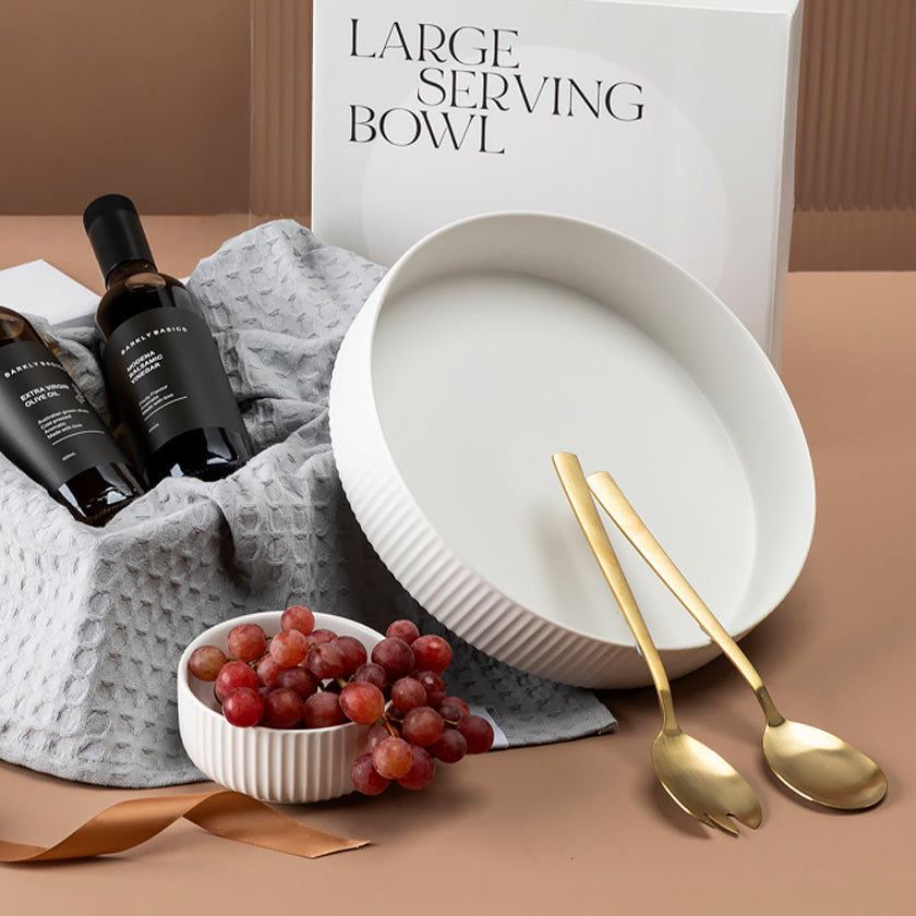 A beautiful settlement gift choice for new homeowners and those who appreciate elegant dining, this gift is thoughtfully curated with stylish and functional kitchen essentials. With premium South Australian extra virgin olive oil and Italian balsamic vinegar, 2 fluted ceramic serving bowls and a set of 2 gold satin serving utensils, the Gourmet Welcome is a timeless settlement hamper that’s perfect for non-drinkers, and is sure to be enjoyed for years to come.