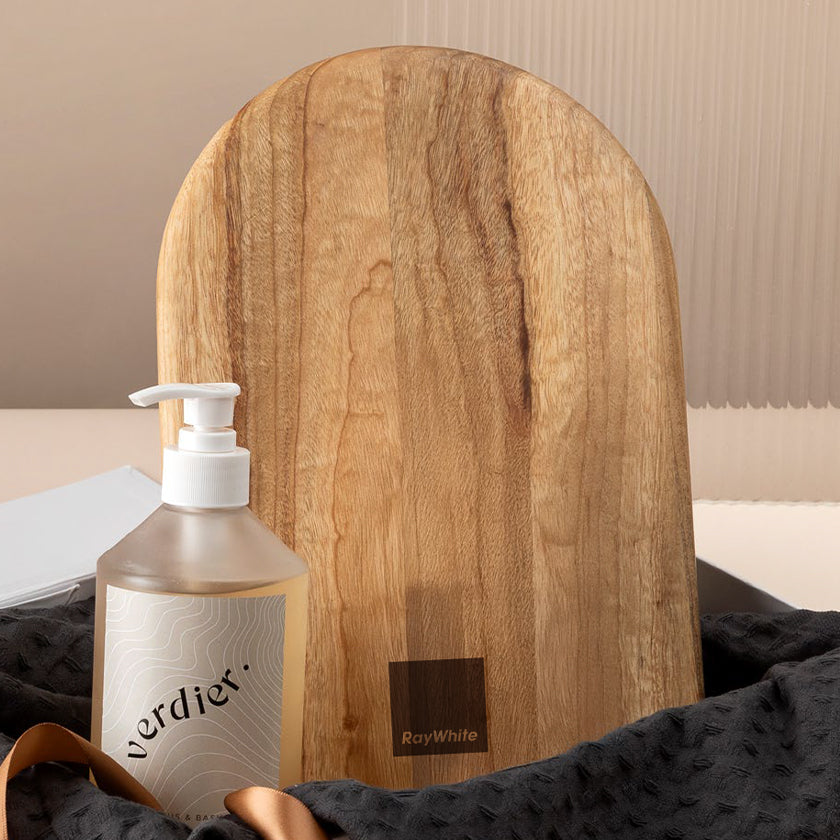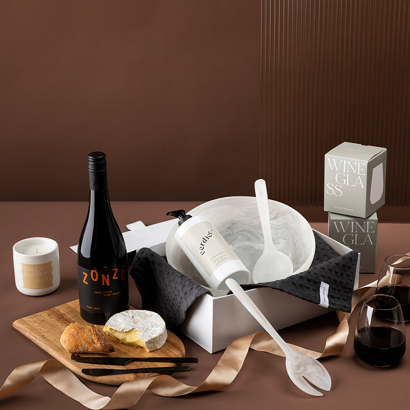 A high-end homewares hamper, thoughtfully curated with timeless, premium pieces making it the perfect gift to leave a lasting impression. Packed full to the brim with luxurious servingware, elevated kitchen essentials and premium Zonzo Estate Pinot Noir – it’s everything your clients will need to entertain in their new home in style.