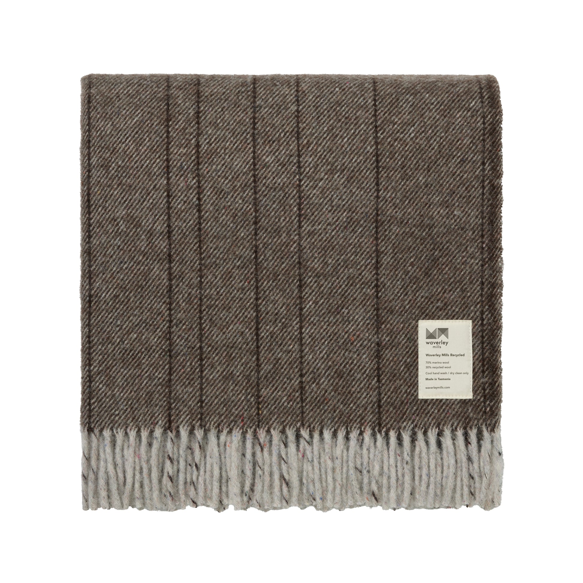 Pure wool offcuts and ends are shredded, spun, and blended with Australian merino wool to make our recycled yarn. In the Classic throw, these threads are woven together in their natural state, letting each speckle of the recycled fibres shine. Each thread is unique, creating a beautiful, variegated throw with a story to tell.